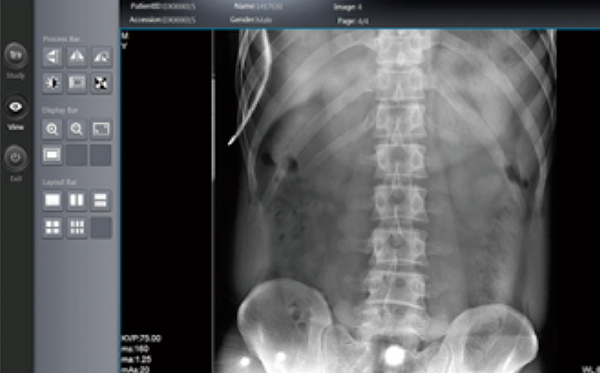 Small portable laptop built in x-ray system, including software, which conclude DICOM connector to PACS system, which can get image and transfer image to medical display, can do printing and edition on that.